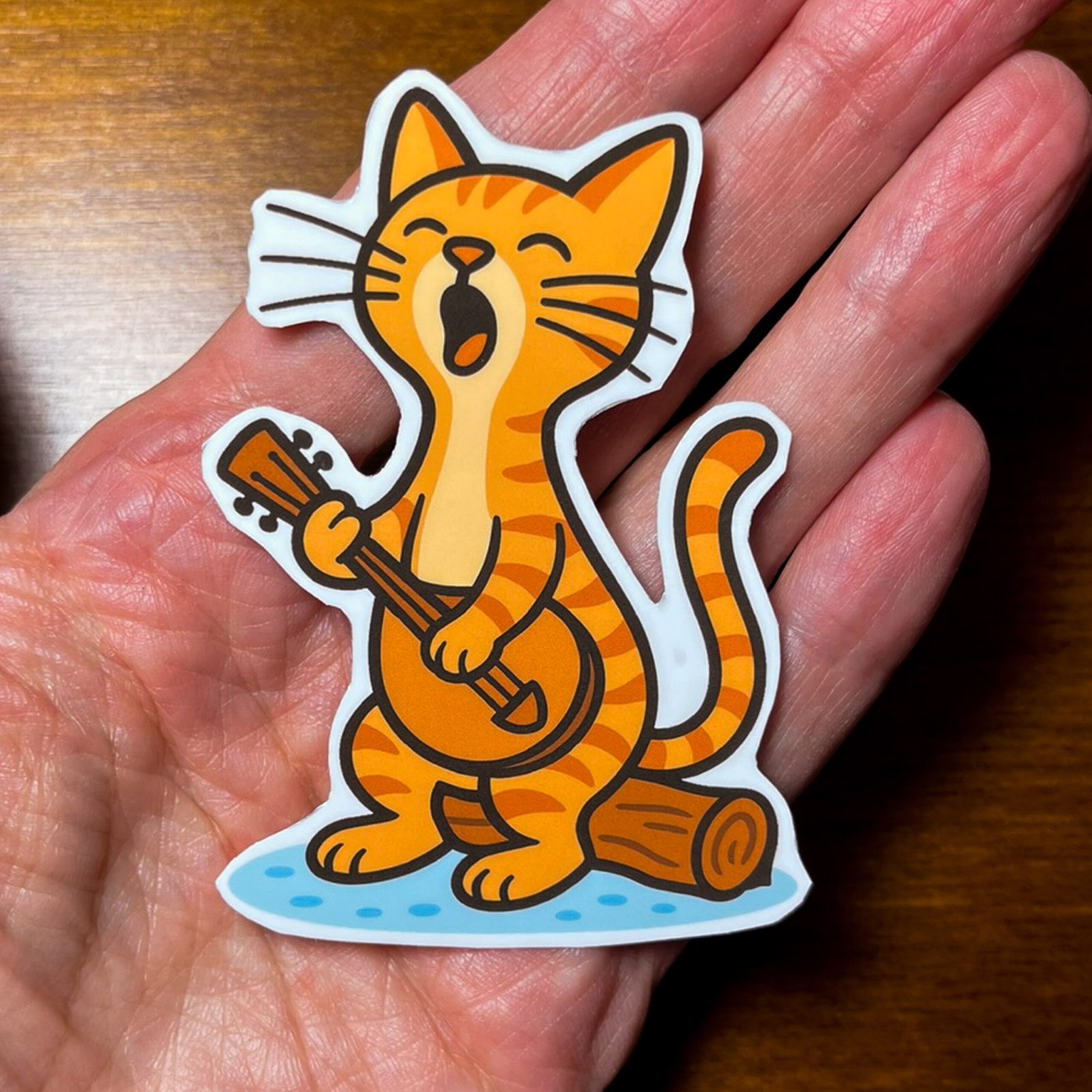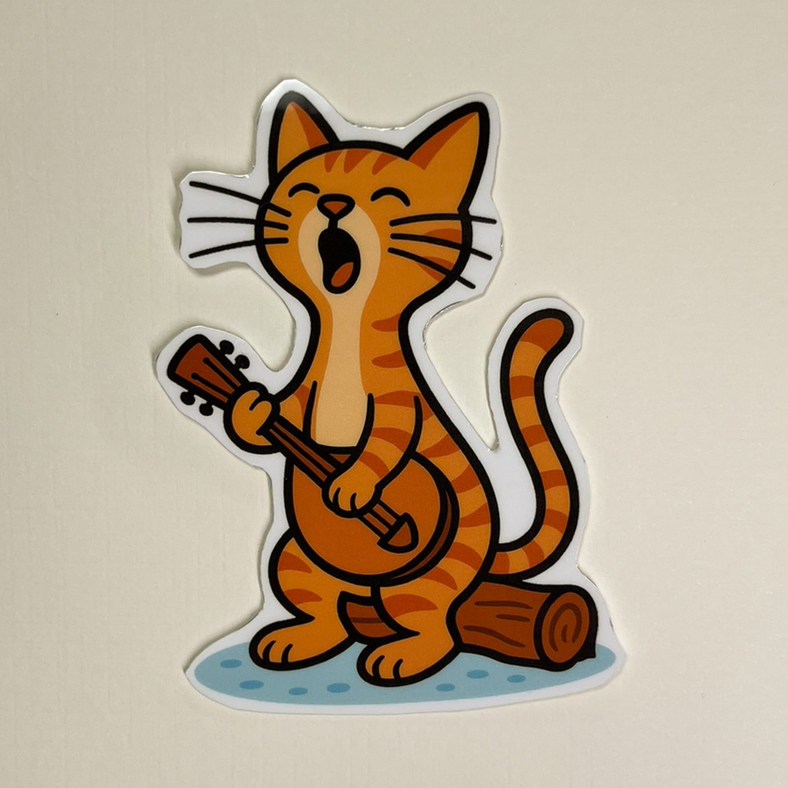 A joyful singing cat from the Studio Second Street Appalachian critters band. Illustrated in a whimsical, storybook style and printed as a durable vinyl sticker with a warm, handmade feel.