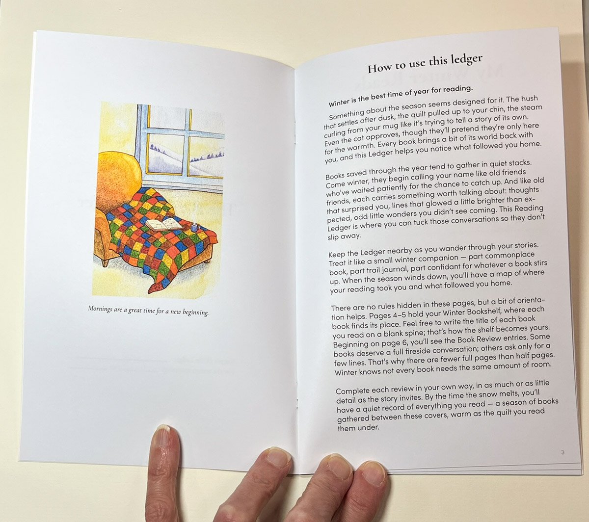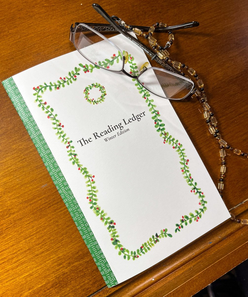The Reading Ledger is a 20-page, saddle-stitched booklet designed for winter reading—clean layouts, illustrated spreads, and plenty of space for notes, reactions, and titles you want to remember. No ads. No clutter. Just paper, ink, and your own thoughts.