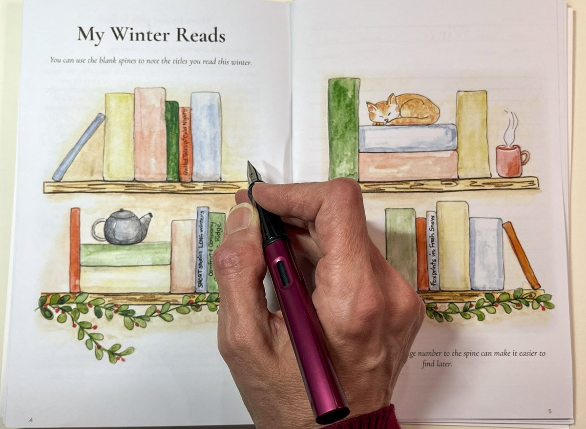 An illustrated “My Winter Reads” shelf to list the titles you hope to enjoy this season